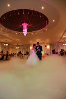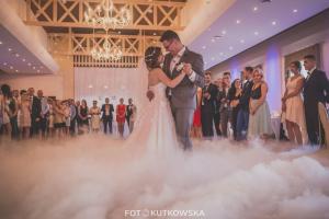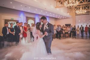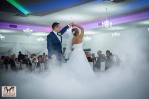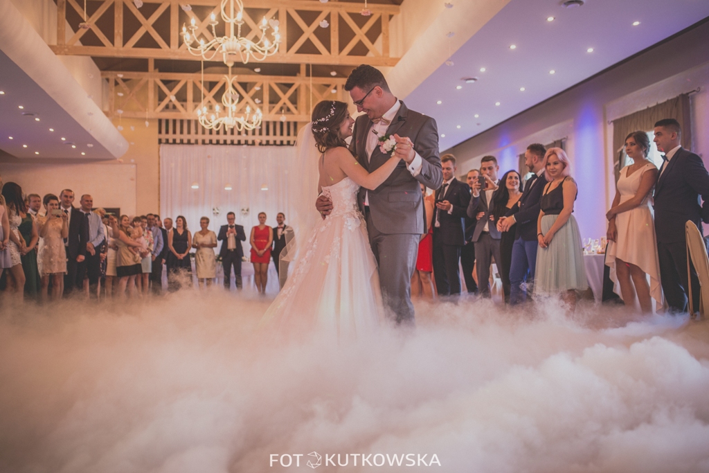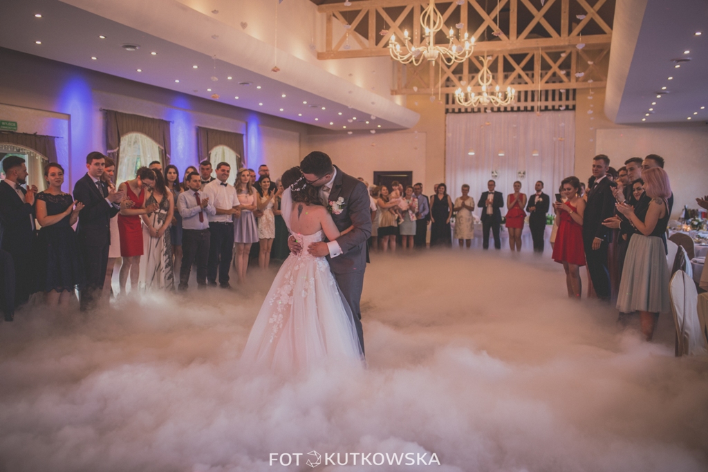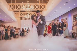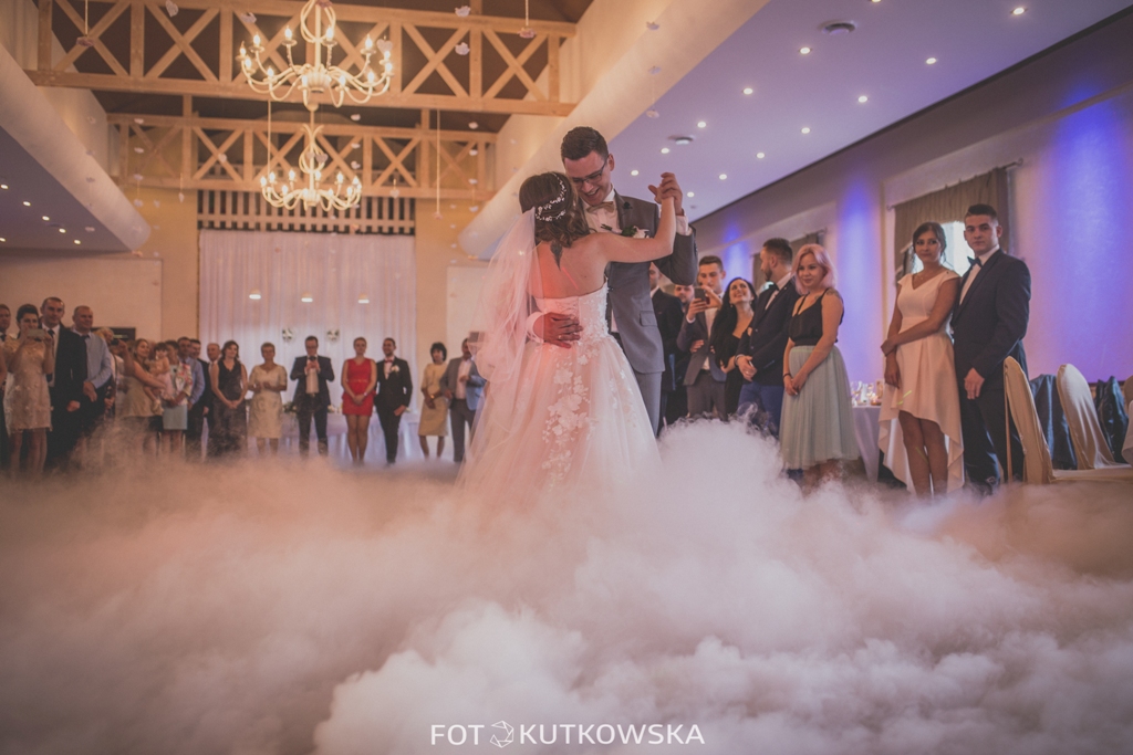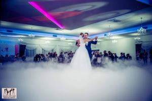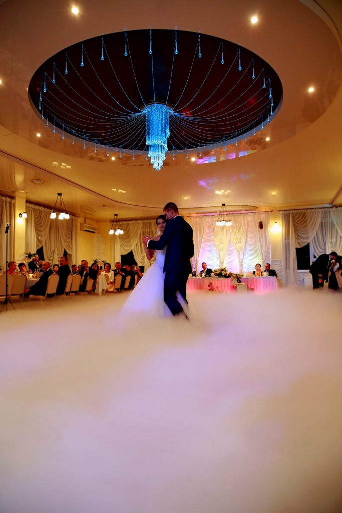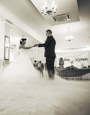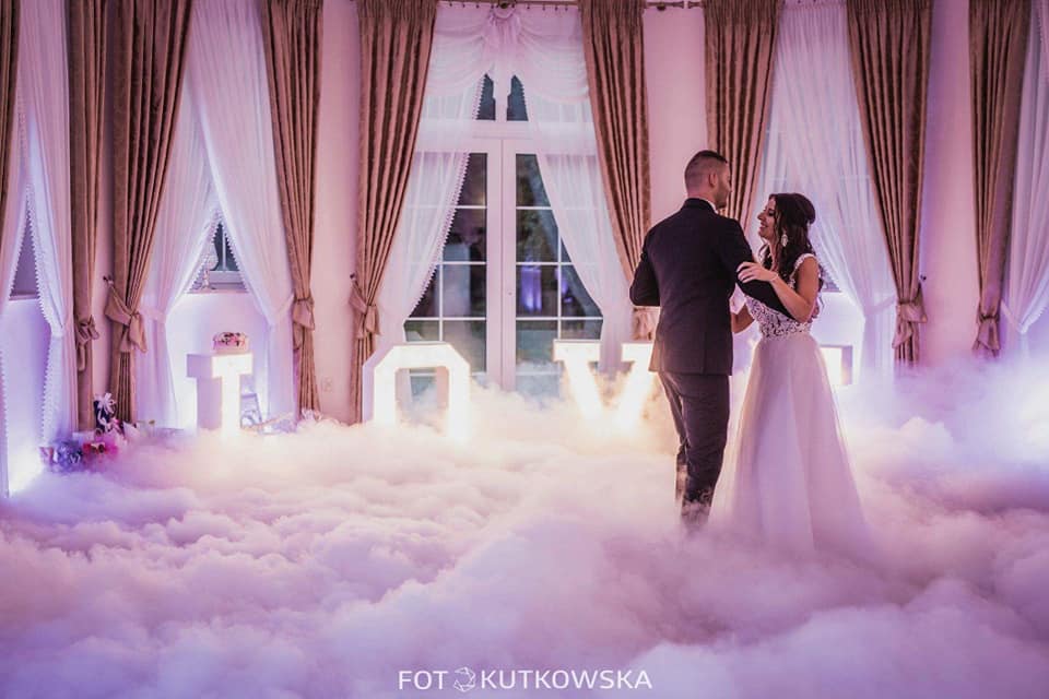 Proponujemy Państwu na pierwszy taniec wynajęcie profesjonalnej wytwornicy ciężkiego dymu. Ciężki dym kłębi się delikatnie nad ziemią sprawiając wrażenie, jakby para tańczyła w chmurach Taniec w chmurach jest idealny dla par, które świetnie dają sobie radę na parkiecie jak i również dla tych, którym przychodzi to trudniej. Dym zasłoni małe wpadki i ukryje niedoskonałości w tańcu, odsłoni natomiast to co najważniejsze, czyli szczęście na twarzach Młodej Pary. Fotograf będzie miał niepowtarzalną okazję do zrobienia niebanalnych zdjęć podczas tańca, a zaproszeni goście będą oczarowani Waszym występem.